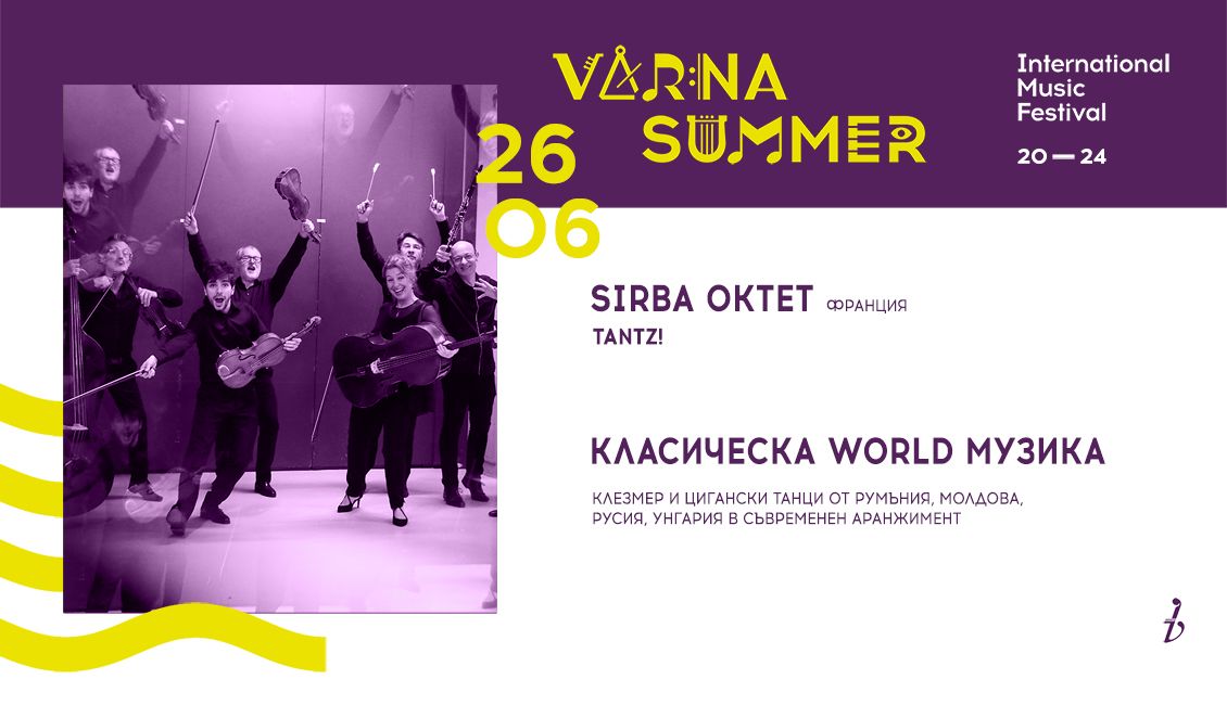 Фюжън от класическа, фолклорни мелодии и цигански танци предлага Международният музикален фестивал „Варненско лято“ тази вечер на жителите и гостите на града. От 19:00 часа в Държавна опера – Варна, посетителите ще имат възможността да се насладят на изпълненията забележителния френски ансамбъл Сирба и необикновения спектакъл „Tantz!”.