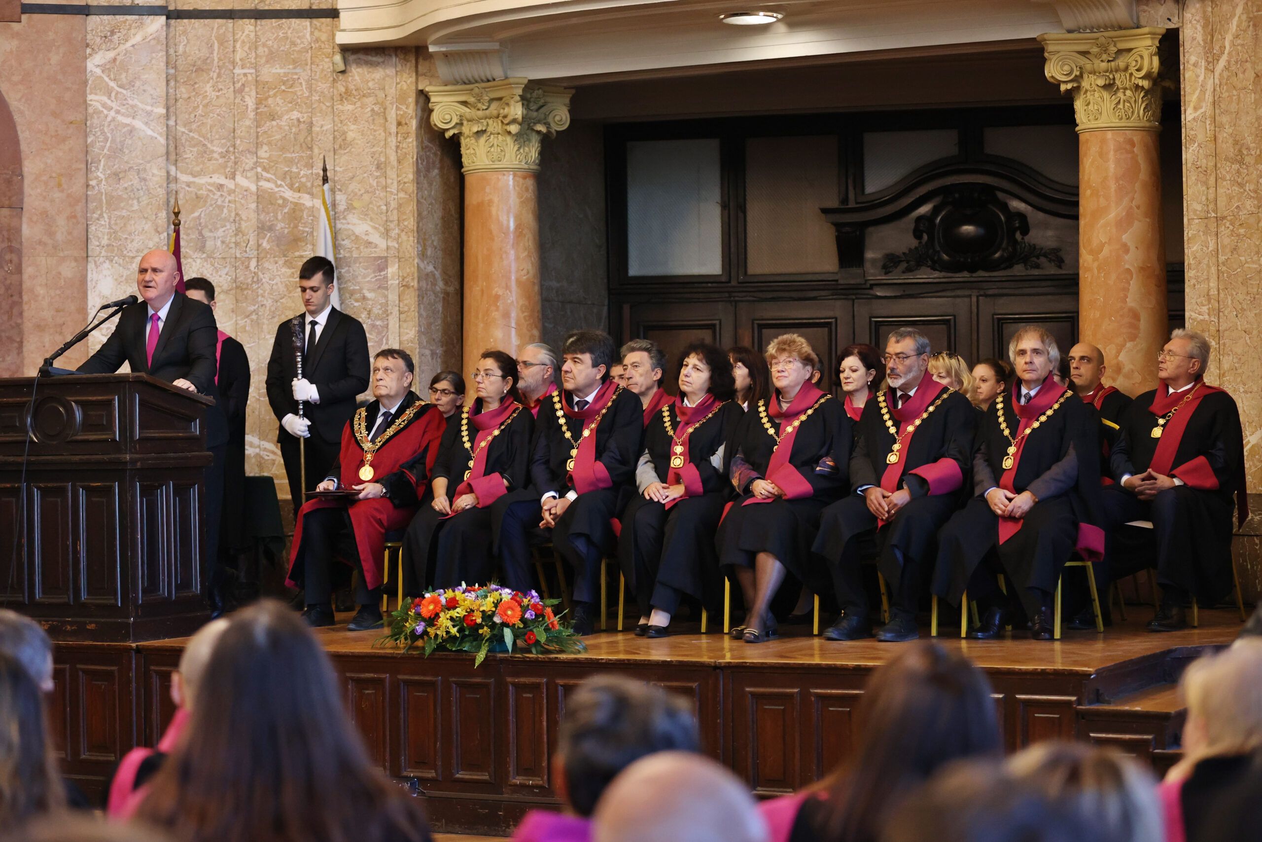 „Бъдете свободни в храма на свободата“ пожела министърът на образованието и науката проф. Галин Цоков на студентите и първокурсниците. По думите му и когато той е прекрачвал прага на университета като студент е имало несрещан дотогава академичен дух в тази сграда. „Духът на свободата в едно несвободно време, свобода в залите, свобода в дискусиите, в мислите в мечтите. Тази академична свобода изгражда независими и добри хора, и професионалисти, които променят България“, каза министърът.