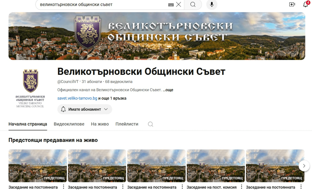 Великотърновски общински съвет вече има свой канал в най-популярната в световен мащаб платформа за видео съдържание – YouTube.