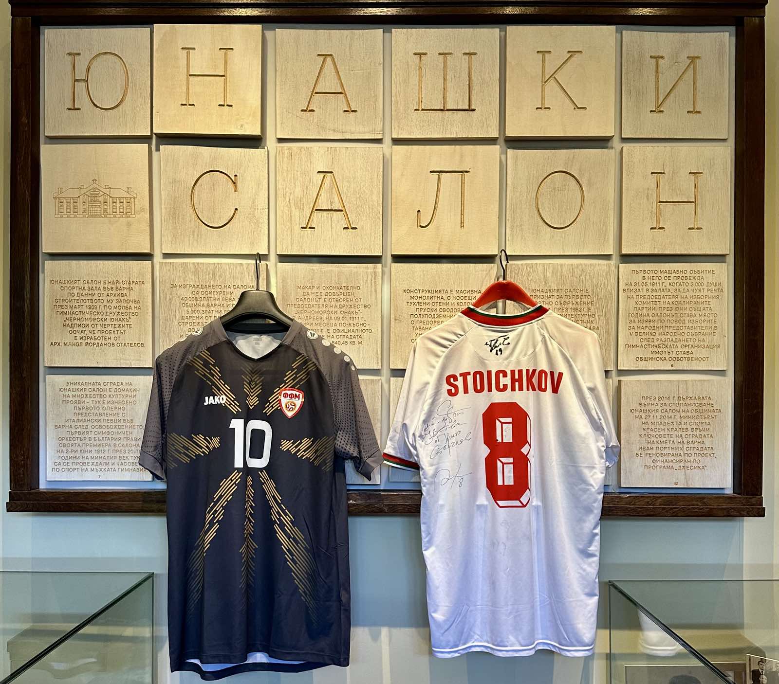 След края на благотворителния мач между звездния ни тим от САЩ ’94 и ветераните на Северна Македония капитаните на двете селекции – Христо Стоичков и Горан Пандев, дариха своите екипи на кмета на Варна – Благомир Коцев.