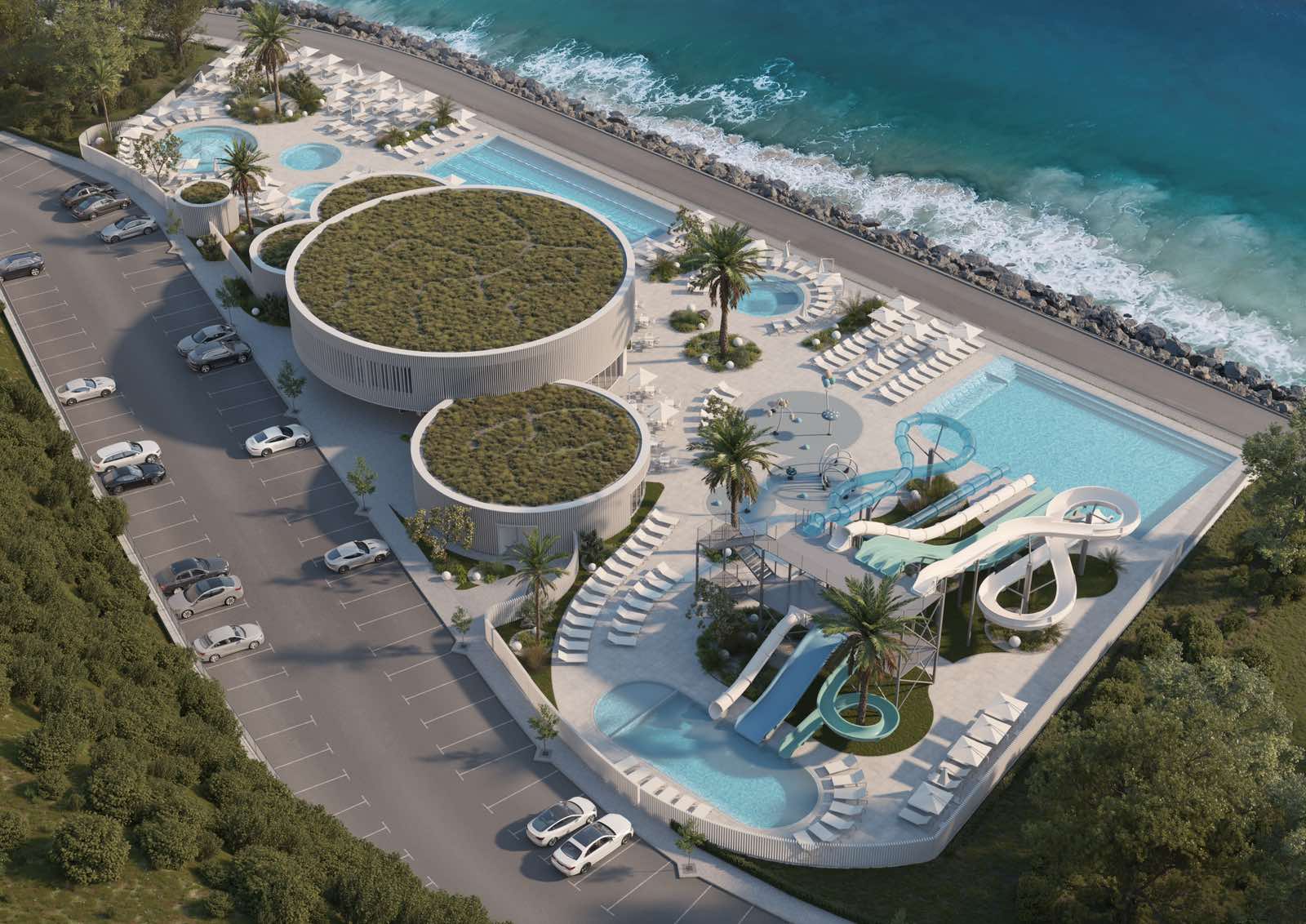 Водният център ще включва басейни с минерална вода, термални зони, зала за спорт, зони за релакс и пространства за активности на открито. Комплексът е проектиран в духа на средиземноморската архитектура и съчетава естетика с функционалност.