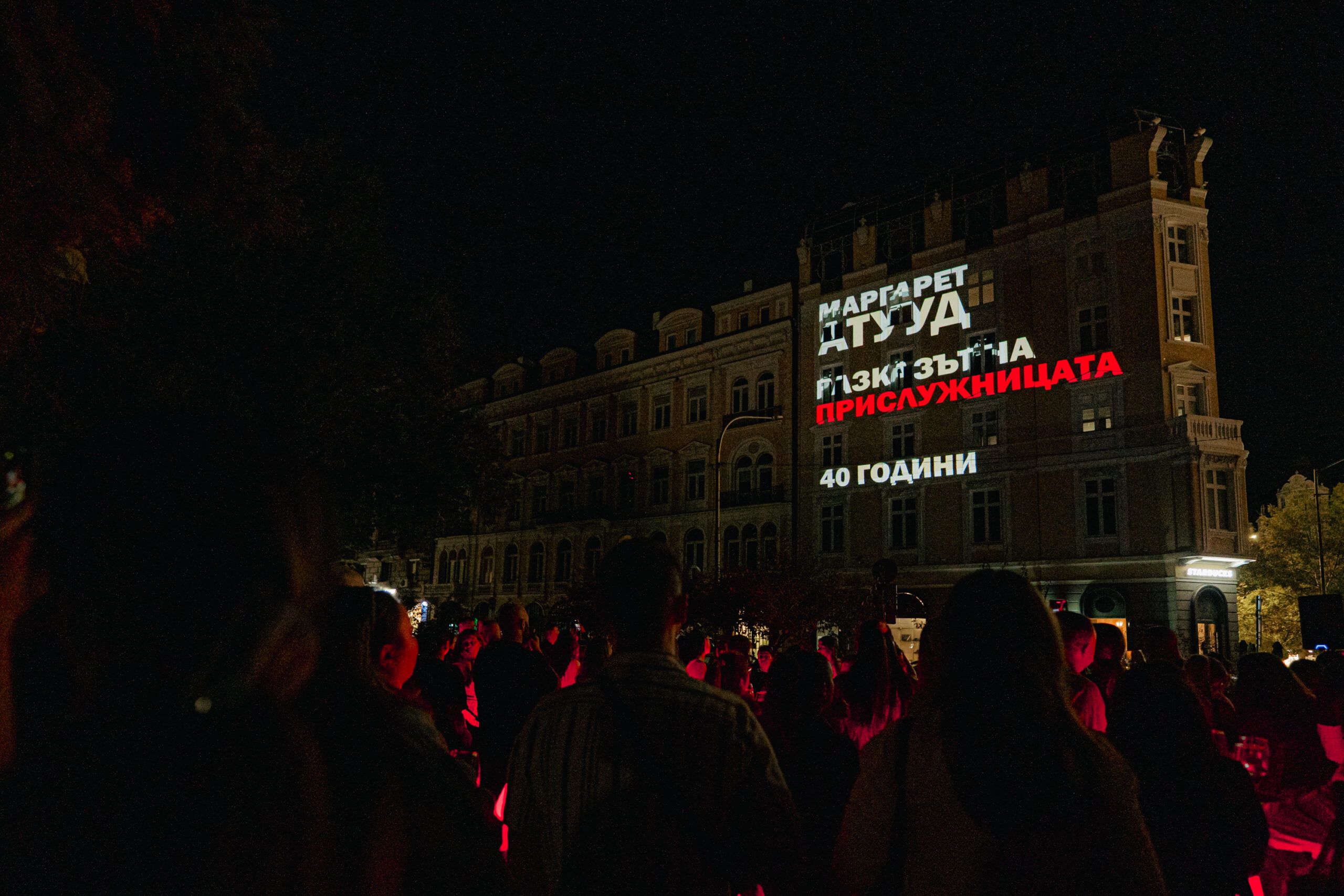 София се превърна в сцена на световна инициатива за правата на жените с грандиозна 3D мапинг прожекция, посветена на 40-годишнината от публикуването на емблематичния роман „Разказът на прислужницата“ от Маргарет Атууд. В продължение на пет минути фасада в сърцето на столицата оживя с визуална интерпретация на романа – произведение, което и днес звучи като предупреждение за крехкостта на свободата и значението на личния избор.