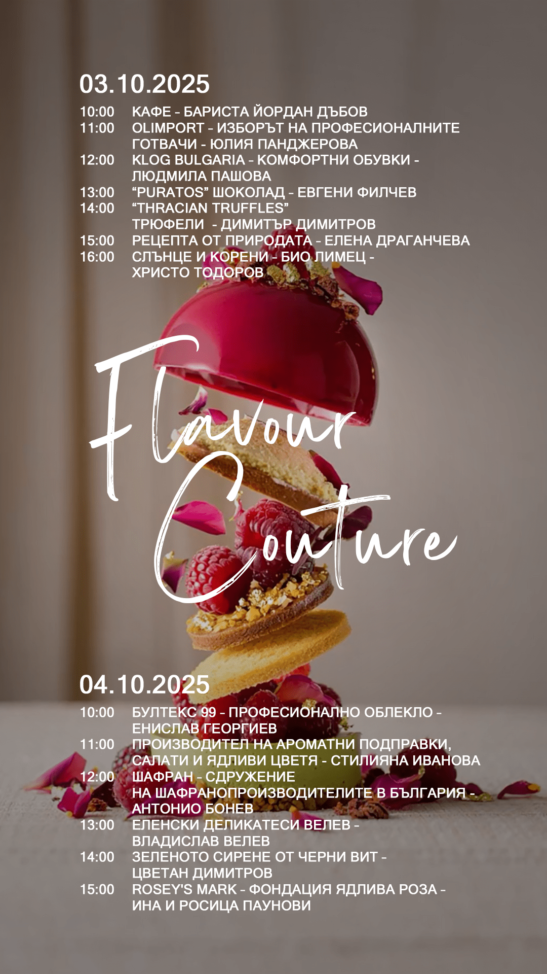 Голямата изненада на „Пагур“ са дните 3 и 4 октомври, когато международният форум ще бъде ще бъде домакин на изключителното кулинарно събитие „Flavor Couture“. В рамките на двата дни достъпът до лекциите, презентациите и всички майсторски класове е свободен за всички любители на кулинарното изкуство.