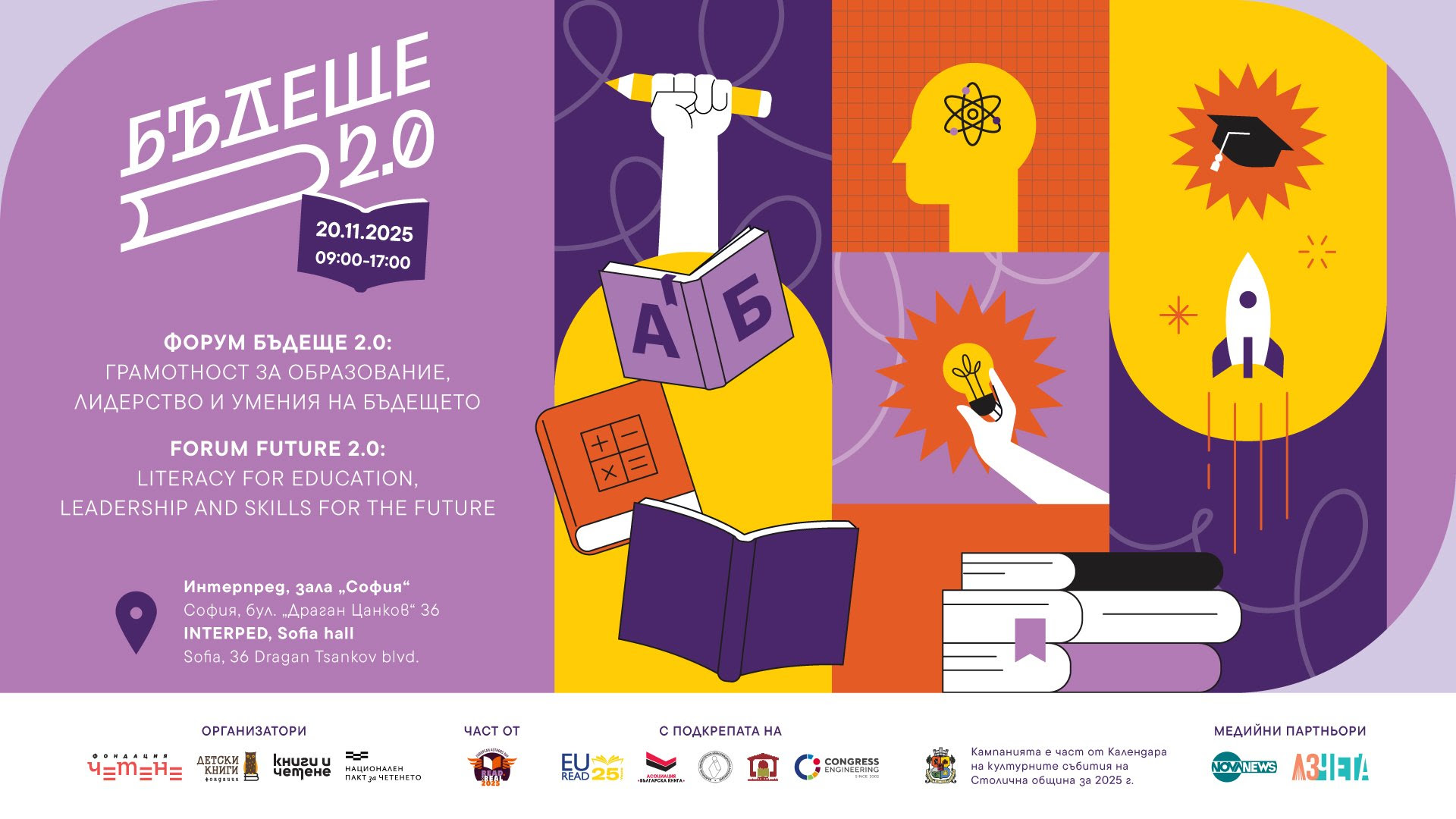На 20 ноември в „Интерпред“ се провежда международният форум „Бъдеще 2.0: грамотност за образование, лидерство и умения на бъдещето“, организиран от фондация „Четене“, фондация „Детски книги“ и сдружение „Книги и четене“ с подкрепата на Столичната община в рамките на Календара на културните събития на София.