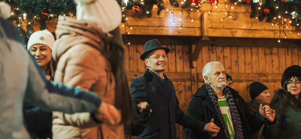Благоевградчани изпратиха старата 2025 и посрещнаха новата 2026 година под открито небе пред голямата сцена в коледното градче, където се извиха дълги хора.